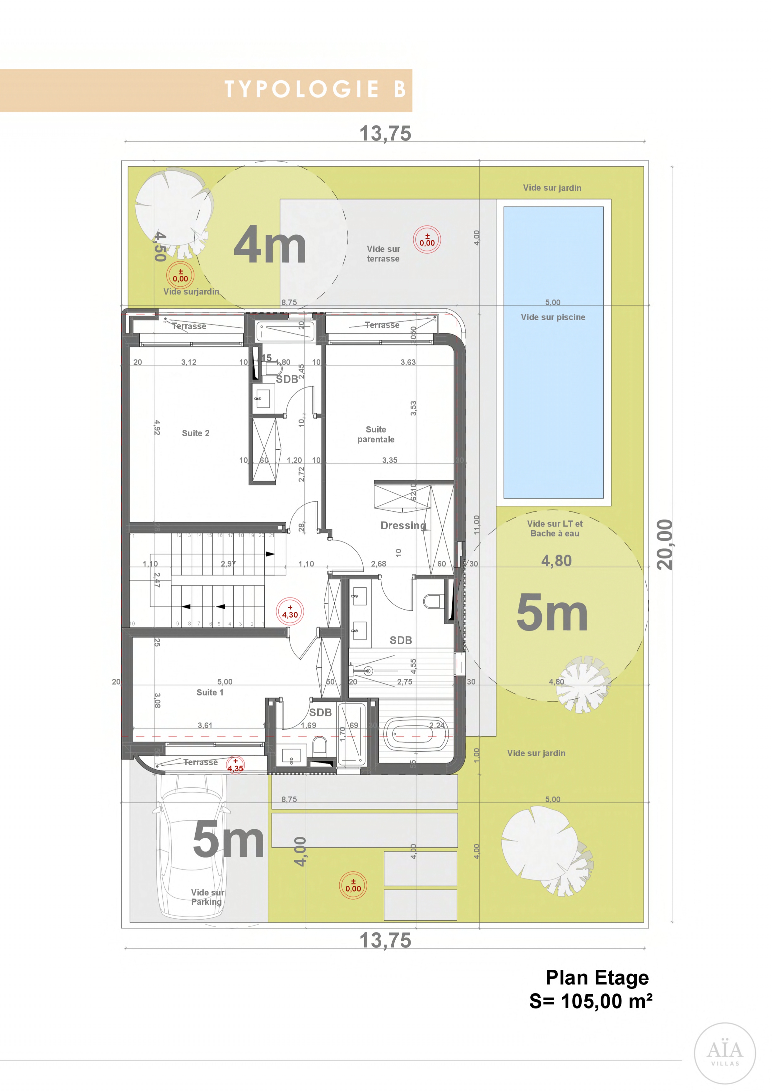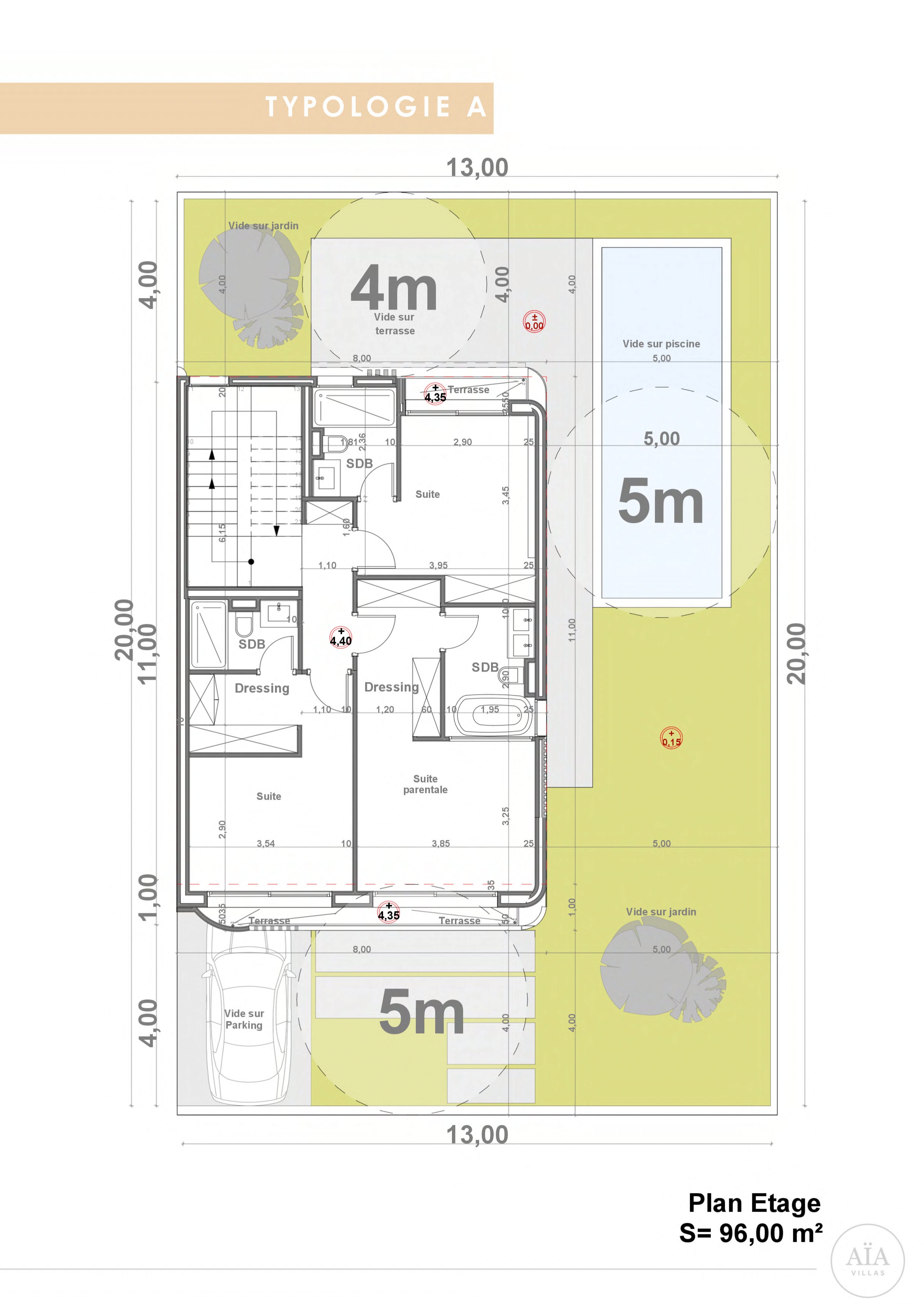 Chaque villa bénéficie d'une grande parcelle avec murs de clôture